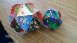 Mrs. Fister’s 4/5 Art class created new Christmas ornaments with old Christmas and birthday wish cards. The entire community actually participated in the project since they were asked to send their cards to school.