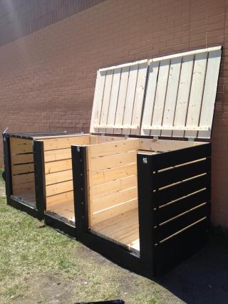 As a result of a school wide waste audit a 3 bin composter was built on our school grounds. The entire school population now participates in composting and collection bins are in all classrooms and common areas. Twice weekly members of the Green Team brings the compost to the outdoor bins. Green Team members as well as other students stir the compost to aerate, monitor green to brown ratios and tends to the compost as needed.